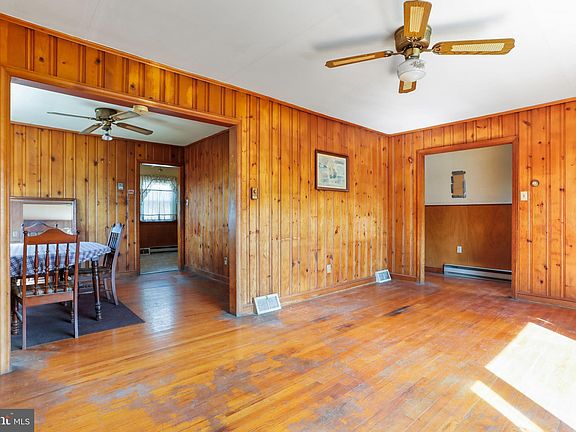 Nice one-level living in Berkeley Springs. Situated on 3 acres, this home features 2 bedrooms, 1 full bath. Hardwood flooring throughout. Living room with wood stove. Eat-in kitchen with pine cabinets, dining area. Separate dining room. Unfinished basement with entry level to underground 1-car garage. Unfinished attic space that could be finished into a bedroom. Additional parking in the driveway and the detached 2-car garage. Storage shed. Sold as-is. Pond is not on property. Close to dining, shops, and state parks such as the Cacapon Resort and Coolfont to enjoy outdoor activities.