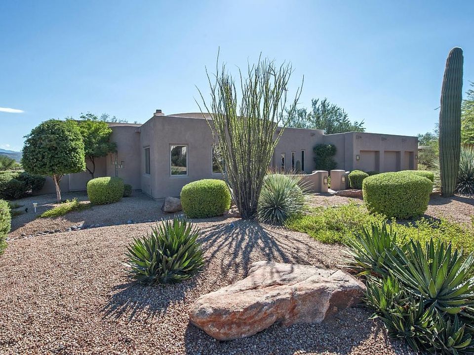 Just that right sized home for retirement. 2400 SF, 2 or 3 Bedrooms, 2 Baths, Great room, Dining area and open kitchen. Granite countertops, neutral Saltillo tile and carpet flooring. Large Great room with gas fireplace, high ceilings. Master Bedroom has coffer ceiling, connecting bath with his and hers sinks, separate tub and snail shower. Guest Bedroom split from Master Bedroom. Office or 3rd Bedroom has walk in closet. East back patio with mountain views, and large lot that would accommodate a pool or casita. 2 car garage and golf cart garage with built-ins & Pavers on driveway. Close location for walking to the clubhouse. Seller has a golf membership and golf cart available.