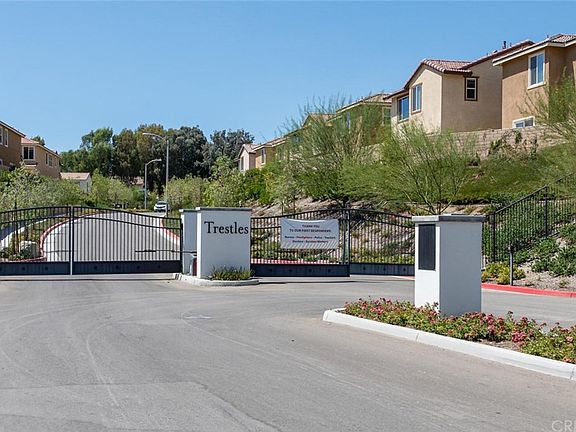 Wonderful Sought After Trestles 4+3 Behind the Gates. Beautiful Curb Appeal on this Immaculate Adult Occupied Home. Perfect Floor Plan with A Full Bedroom and Bathroom Down. Large Great Room Featuring a Spacious Center Island Kitchen with Breakfast Bar, Granite Counters, Stainless Steel Appliances and Tons of Cabinetry. The Dining Area and Family Room are Adjacent and Create A Big Open Feel! The Second Floor Features High Ceilings, Laundry Room with Cabinets and Folding Counter, Two Ample Bedrooms, and a Double Sink Vanity Bathroom. The Master has Private Views of the Rear Hillside, Roomy Walk-In Closet, A Double Vanity, and a Soaking Tub. Stunning Plank Style Floors, Upgraded Carpeting, and Recessed Lighting Throughout. Upgraded Fixtures. Mud Room Style Entry Off of the Two Car Garage. The Low Maintenance Rear Yard Has a Spacious Patio, Grassy Area and Privacy. Amazing Location Within the Development Just Steps from the Inviting Community Pool & Spa and Two Tot Lots and Greenbelts. Extensive Paseo System for Jogging, Walking, Biking Just Outside the Gates. Train Station, Freeway Access and Wonderful Amenities Nearby! This Is An Absolute Gem! No Mello Roos!