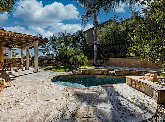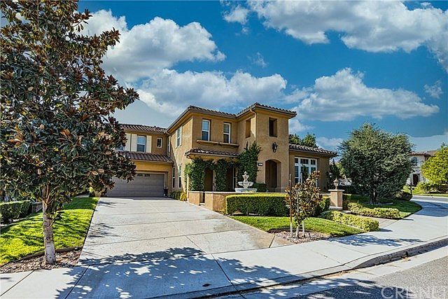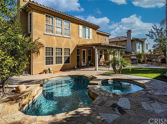 Gorgeous Valencia Westridge Pool Home !!! The open floorplan has 5 bedrooms and 5 bathrooms, formal living area with high ceilings . The dining room accesses the kitchen with a large island, lots of cabinetry, granite counters, desk area and pantry. The master bedroom has its own retreat and massive walk in closet. There are 3 additional bedrooms in upstairs. One full bedroom with attached bathroom in downstairs. Beautiful backyard with custom built fireplace, outdoor kitchen with BBQ and sink. Community offers club house, pools, valencia paseo system, sport court, close to award winning schools.