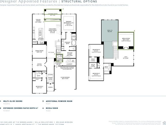 The Bolivar Mission plan is an impressive home with an elongated foyer with tray ceiling flanked by a short hall with a full bath and private bedroom, ideal for overnight guests. A convenient home office is the optimal space to manage family schedules. Celebrations will be memorable in the formal dining room just off the family room with linear fireplace. The chef's kitchen is adorned with upgraded under cabinet lighting, center island, casual dining area, and walk-in pantry. A relaxing primary bedroom is enhanced with a tray ceiling and full bath that includes dual sinks, separate tub and shower, linen closet, and walk-in closet. Upstairs is host to a sizable loft and bonus media room along with two generously sized bedrooms with walk-in closets and a shared full bath. Located in an amenity-rich community exclusive to residents, this is the perfect home for you. Disclaimer: Photos are images only and should not be relied upon to confirm applicable features.