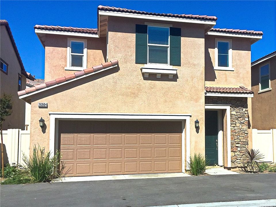 Wow! NO MELLO ROOS or additional tax BONDS for this newly constructed upgraded 3 bedroom home nestled in the new private Trestles community with gated entry by Williams homes. This spacious home has a very desirable floor plan, featuring huge great room and kitchen combination. Beautiful gourmet styled kitchen boast a ton of features including espresso colored wood cabinetry, granite accents the counters and large center island which also features sink and bar seating, stainless steel sink and appliances, and dark faux wood flooring throughout first floor. Impressive interior entry with cathedral ceiling and upgraded staircase railing. Laundry room is located upstairs for your convenience, as well as all 3 bedrooms including a large master bedroom with enormous walk-in closet, master bath has espresso cabinetry with double sinks and separate tub and shower. Some of distinctive amenities throughout the home include recessed lighting, dimming switches, great room and bedrooms wired for fans, energy efficient window and tankless water heater. Low maintenance backyard with large stamped concrete patio. The 2 car attached direct access garage is dry walled. Community features recreation area with large pool and spa, park and tot area. Easy access to shopping, restaurants, biking/walking trails, nearby freeway and Metro Link Station. Don't miss this one it's a rare find!