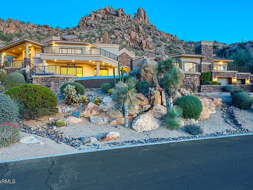 Exquisitely remodeled custom estate in North Scottsdale's exclusive guard gated Estancia is remarkable in every way. Exceptional homesite perfectly designed to capture panoramic postcard worthy mountain, city and golf views while perfectly nestled hillside with Pinnacle Peak Mountain and Sonoran Desert as your backdrop. Enjoy layered mountain range silhouettes overlooking the 6th, 7th and 8th holes of the renowned Estancia golf course. Extraordinary outdoor living spaces with showstopping first impression - negative edge pool and spa, turf and paver lounge area, covered patio, generous hardscaped area for entertaining and lounging, and built in BBQ grill. Seamless indoor-outdoor AZ living with spacious living areas with soaring ceilings boasting breathtaking panoramic views across