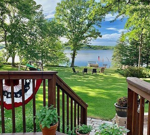 BIG PRICE REDUCTION!! AMAZING LAKE HOME!! 152' SAND BOTTOM FRONTAGE ON THE PARK LIKE SETTING 4 BDRM, 4 BATH HOME WITH 3,584.SQ.FT LIVING SPACE. REAL STONE FIREPLACE, LAKESIDE DEN, PRIMARY SUITE, HIGH CEILINGS, FAMILY RM, GEOTHERMAL IN FLOOR HEAT & FORCED AIR FURNUCE!! OPEN LIVING CONCEPT!! 3 SEPERATE GARAGES, STUDIO!! PROPERTY IN GREAT CONDITION AND WELL TAKEN CARE OF!! ($33,000 OF IMPROVEMNTS IN THE LAST FEW YEARS NEW SHINGLES, RADON REMOVAL SYSTEM, SEPTIC SYSTEM, WELL PUMP & TANK & DEMAND SYSTEM FOR GEOTHERMAL, TREES REMOVED!!) PRIMARY BDRM/BATH AND MANY ROOMS FACING THE LAKE!! ALDER KITCHEN CABINETS. ETHEL LAKE IS SPRING FED WITH GREAT CLARITY!! MUST SEE THIS LAKE HOME!! MANY HIGH SOLD SALE PRICES ON ETHEL LAKE, HOLDS Its VALUE!! A MUST-SEE PROPERTY IN PERSON!