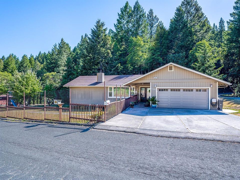 Quiet four bedroom two bathroom home sitting on two lots, backing up to a seasonal creek. Home features large kitchen with island, separate laundry room, master on opposite side of home with large tiled shower, Large deck and a patio over looking the creek. Back yard is fenced with room for the kids to explore and entertain. Home has chicken coop, and extra storage underneath the house.