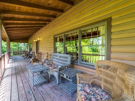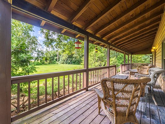 Rare & Unique Find in Crown Point!Experience the charm of log cabin-style living on nearly 6 private acres with breathtaking views from your fully covered wrap-around porch. This one-of-a-kind home offers rustic elegance and serene privacy in the highly sought after Crown Point School District. Equestrian friendly, horses permitted and there is plenty of room on this property to build your dream stable.Step inside to a warm and inviting main floor featuring a vaulted ceiling living room with a grand brick fireplace, a country-style kitchen, spacious dining area, two bedrooms (one with an en-suite bath), and a stunning sun-room perfect for peaceful mornings or evening relaxation.Upstairs, you'll find a cozy loft and a spacious primary suite with a luxurious bath including a soaking tub, double vanity, and walk-in closet.The walk-out basement is a standout feature with a private entrance, making it ideal for related living or a studio apartment. Complete with its own full kitchen, a second living room with fireplace, office space, and both a full and half bath, the possibilities are endless.The tranquil grounds radiate peace and privacy--this is more than a home; it's a retreat.This property is truly a must see.