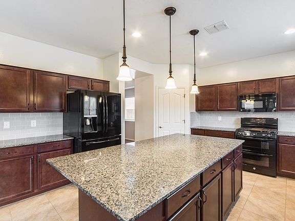 Step into your move-in ready 4 bed, 2.5 bath home located in the heart of Gilbert! Your oversized kitchen is everything you could want. There are sleek black appliances, an oversized island with a breakfast bar, granite countertops, and dark cherry wood cabinets. In the den, there is beautiful built-in shelving, perfect storage or a workspace! Upstairs, the bedrooms are spacious and have excellent natural light. In the backyard, you can play yard games in the artificial turf, surrounded by beautiful pavers. Schedule your showing today!