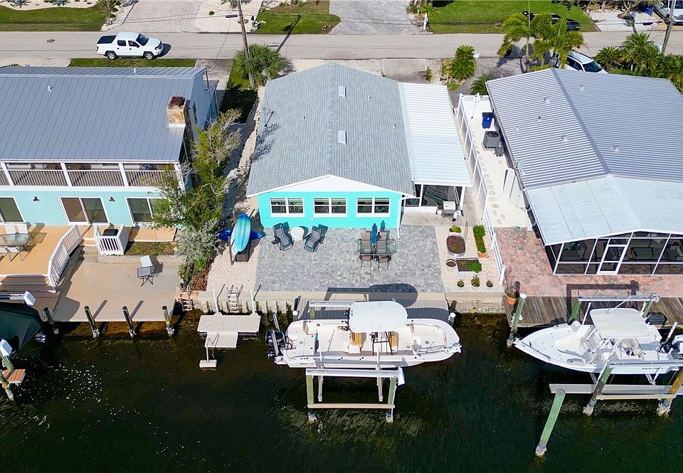 Pristine 2 bedroom 1 bath home located in the heart of Matlacha on direct deep-water access canal with no bridges! World class fishing, beautiful white sand beaches, incredible boating and amazing wildlife are right at your fingertips when you live the Island Life in Matlacha! This island home is within walking distance to everything Matlacha has to offer including unique art galleries, live entertainment, restaurants and boutiques. As soon as you enter this home a serene feeling comes over you as you are greeted by water views and open living space. The entire back of the home is impact windows really maximizing the light and view. Some of awesome features of this home include, new roof (2022) wood plank tile, updated kitchen with a large island, spacious bath and indoor laundry. The outdoor living space is impressive featuring a screened in porch and pavered backyard. Located close to the mouth of the canal, the composite dock with 10k boatlift and separate kayak launch make boating a breeze! This home is very low maintenance with a stone front yard which also doubles as additional parking for all of your toys! Come see today and start Living the Island Life!
