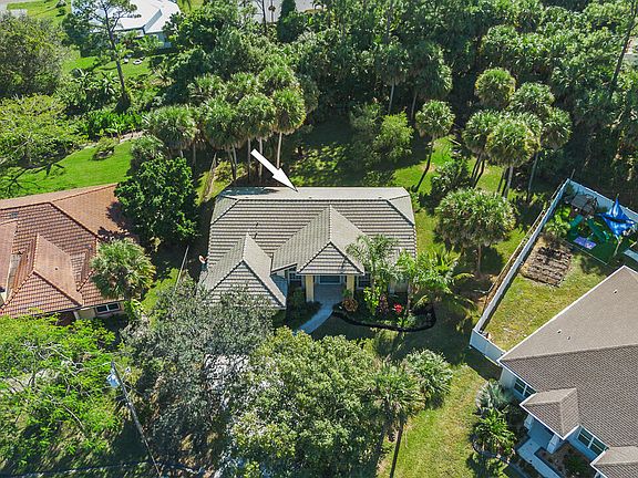 Welcome Home! This beautiful 3 bedroom PLUS Den/office home is waiting for you! This 2005 Custom built home is on an oversized pie shaped lot with tons of Palm Trees and backs up to a wooded area to give you the privacy that you deserve! Over 2000 square feet under air in this well appointed floorplan. 3 spacious bedrooms, den/office, 2 bathrooms, formal dining, Family room and Living room along with a screened back porch on a fully fenced lot! Accordion shutters are on site making hurricane preparation easy peasy! Come see what Florid ahs to offer.