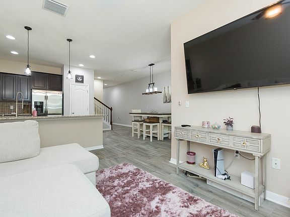 Seven Oaks gated Townhome with 3 bedroom, 2.5 bath, townhome located in Wesley Chapel with resort like amenities! This home offers an open, bright living area with high quality wood-tile flooring throughout the first floor. This home boasts a formal living and dining room space. The kitchen boasts granite counter tops recessed and decorative pendant lighting, 42 inch wood cabinets with molding, tile backsplash, stainless-steel appliances over-looking the family room. The master bedroom features a large walk-in closet and an en suite bathroom with dual vanity sinks and stand up shower. Outside you will enjoy the screened in patio over-looking the yard. The home is centrally located near the best shopping, dining, entertainment & medical facilities Wesley Chapel has to offer. Seven Oaks features a clubhouse, pool with splash park, Jr. Olympic size pool, tennis courts, sand volleyball, basketball courts, playgrounds, gym and much more!