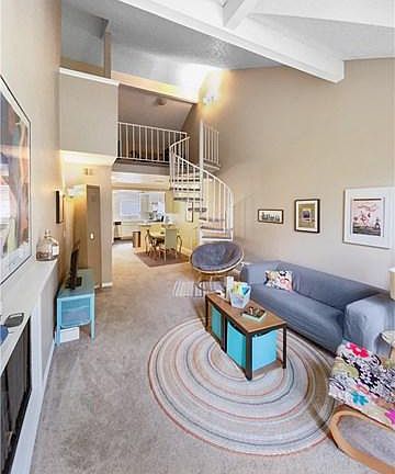 Don't miss out! This appealing home features newer copper re-pipe, A/C & water heater! Neutral decor & a balcony with hillside views! 2 bedrooms, 2 baths and a spacious loft with extra room! The living room features vaulted ceiling, a cozy fireplace and sliders to the balcony! Spiral staircase to loft could be third bedroom with closet and a bonus area that can be utilized for office, game or hobby area! Dining area with recessed & accent lighting. Kitchen has stainless steel range, dishwasher and microwave, garden window over sink and convenient breakfast bar! Master bedroom with vaulted ceiling, ceiling fan and walk in closet! Second bedroom also has vaulted ceiling! Indoor laundry closet with new stackable washer and dryer included! Great association amenities including pool, spa, & tennis courts! Easy access to freeway, shopping, schools and more!