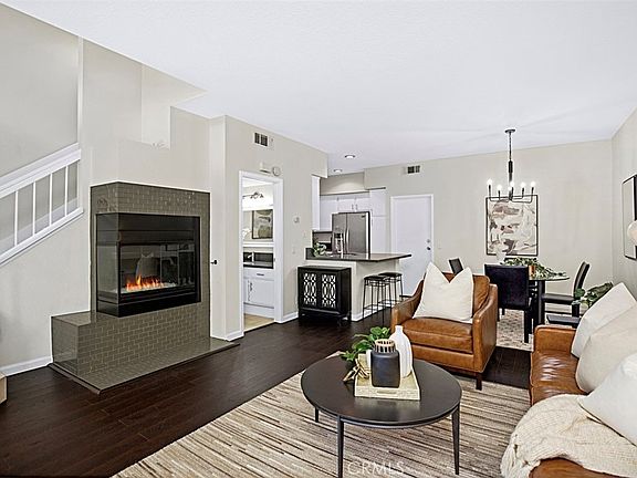 Welcome to this beautifully maintained home in the highly desirable Emerald Point community of Mission Viejo! Light, bright, and thoughtfully updated, this residence offers effortless living with plank flooring throughout (no carpet) and fresh interior paint. The open-concept great room features a seamless flow from the kitchen and dining area into the family room, complete with a cozy fireplace. The kitchen is appointed with quartz countertops, white cabinetry, stainless steel appliances, a gas range, peninsula seating, and an inviting dining nook. Upstairs, the primary suite provides a peaceful retreat with an ensuite bathroom featuring a dual-sink vanity, walk-in closet, and a private water closet with a tub/shower combination. Two additional bedrooms—including one with a walk-in closet—share a full secondary bathroom, while the hallway offers generous linen storage. Additional highlights include a newer HVAC system with Nest thermostat and a pristine two-car attached garage with epoxy flooring and a dedicated laundry area. Step outside to the charming patio with a freestanding arbor—perfect for relaxing or entertaining. Residents of Emerald Point enjoy two pools and spas with cabanas, scenic walking paths, and access to Lake Mission Viejo with boating, swimming, fishing, concerts, and community events. This impeccably maintained home blends comfort, convenience, and the best of California living. Welcome home!