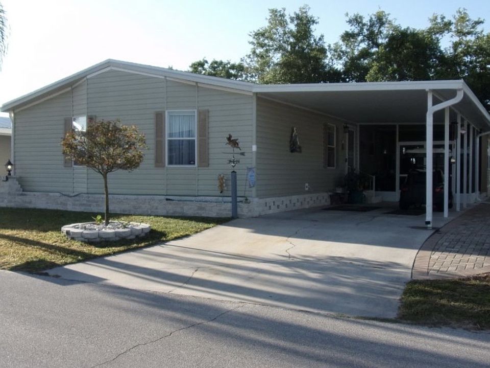 2004 turnkey gorgeous, furnished, open concept. 2 bedrooms, 2 bath. Cathedral ceilings throughout with vinyl floors in dining room & kitchen. Carpet in the Living room and bedrooms. Stocked kitchen with dishwasher and triple reverse osmosis water filter under a new kitchen sink. Spacious master bedroom with attached bathe with shower and double sinks. Nice size guest room with bunk bed that are presently unattached. Separate full guest bathroom. Lanai facing south, with glass windows and screens and a mini-split AC/Heater. A new screen room on side of home provides a nice entertainment area. Patio area behind house with nice pavers, another great area for entertaining. New shingled room 2023. Golf cart included.