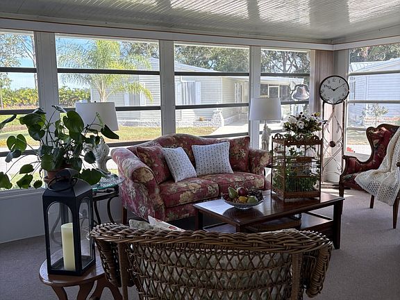 Immaculately maintained three-bedroom, two-bath home featuring transom windows that fill the living room with natural light. The separate dining room showcases a beautiful chandelier, while the kitchen comes fully equipped with appliances. The spacious master suite offers dual vanities and a relaxing garden tub. Enjoy serene views from the lovely front Florida room overlooking the pond across the street.