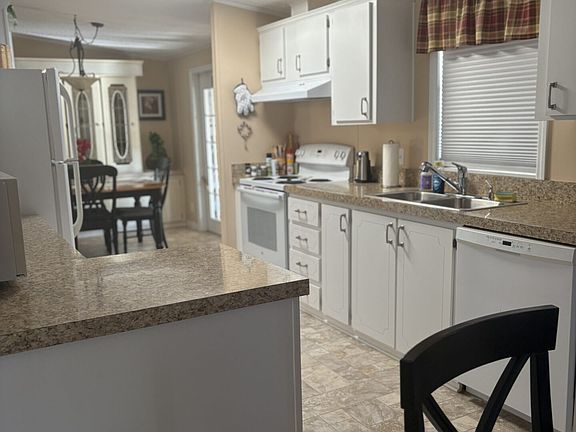 This bright and inviting home features a spacious front living room, two-bedroom, two Baths, turnkey, move in-ready convenience. Laminated flooring runs through the Livingroom and both bedrooms. The fantastic primary bedroom offers an en-suite bath with a stand-up shower. Private small office area. The home includes a rubber roof-over with a lifetime warranty and attractive pavers along the side - perfect for parking your golf cart.