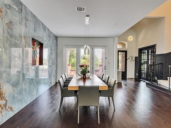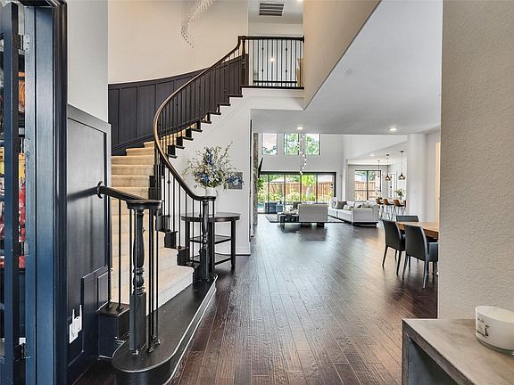 This four sided brick home built by Toll Brothers with a 3 car garage rests on an oversized cul-de-sac lot and has been tastefully upgraded with quality in mind. The feel of a custom home is sensed upon entry from the marble accent wall in the dining room to the view of the backyard oasis through the folding panoramic doors in the living room that opens up to the covered patio. The living room features an electric fireplace with marble spanning from floor to ceiling and slated wood panel accent walls. The kitchen comes equipped with a gas cooktop, double oven, and an island with a Lefton waterfall sink. The primary bedroom, study, and guest bedroom with an en-suite bath can be found on the first floor with 2 guest bedrooms and media room with theatre grade surround sound on the second floor. The back fence has been replaced and the heated pool features a brand new pool pump. North Grove Amenities include a club house with fitness center, resort style pool, walking trails, and more!