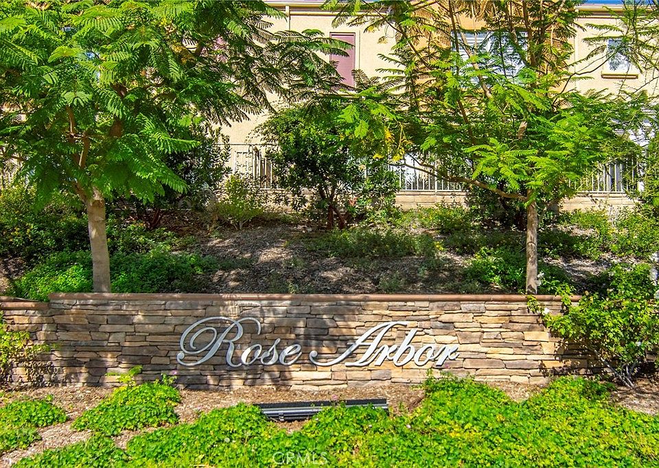 Presenting an ideal end-unit within the sought-after Rose Arbor Condominiums. Come experience piece of mind within this security patrolled community. This prime locale affords the opportunity to savor the surrounding tranquil lush foliage from your large private balcony. Ample windows invite natural light to shine throughout the unit which features a spacious living room with cozy fireplace, smooth ceilings, beautiful flooring and distinct architectural accents. Gorgeous kitchen affords stainless steel appliances, including a refrigerator and plenty of cabinetry. Your primary suite offers access to the balcony, two mirrored wardrobes and a stunning full bath. Desirable direct-access garage comes equipped with a full-size side-by-side washer and dryer. You’re just steps away from a spectacular pool & spa with convenient outdoor shower and restrooms. Take a leisurely stroll, bike ride or go for a run along the adjacent lighted Paseo the area is renowned for. Mere moments to loads of shopping, yummy eateries and easy freeway access. Don’t miss!