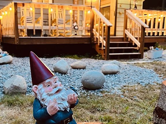 Modern comfortsOnsite washer and dryerPrivate trailPullout couchEnchanting gnome-adorned garden