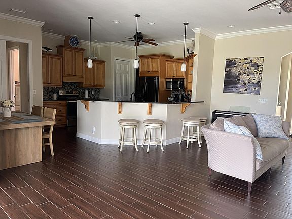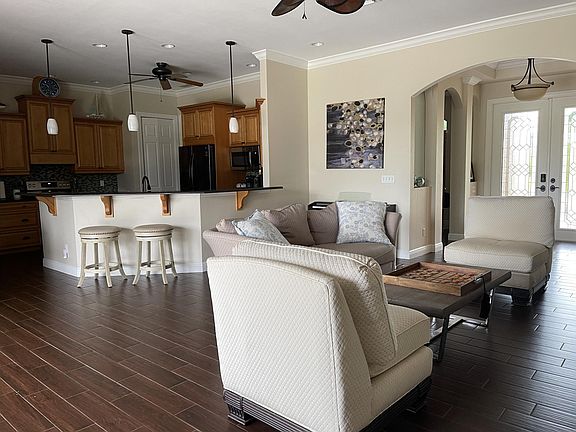Light and bright open floor plan offer new tile floors throughout and newly installed carpets in the bedrooms. This home has plenty of sunlight through large sliding glass doors that fully open up to the outdoor lanai area. There are plenty of seats in front of a 65" TV in the spacious family room, which is perfect for family gathering, enjoying movie nights and playing board games! Master bedroom also has a 55" TV for your enjoyment.