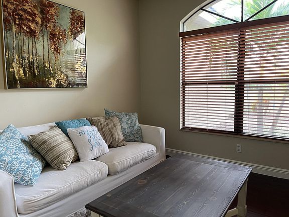 This 2,100 sq. ft. Spanish style ranch home in a one story, open floor concept, 10-foot cathedral ceiling throughout, three bedrooms (Bedroom 1 - King, bedroom 2 - Queen, and bedroom 3 - 2 twins), 2 full bathrooms, den, office space, great room opening up to an enclosed lanai, and a huge separate dining room. Beautifully fully furnished and comfortably decorated that you will enjoy your stay.