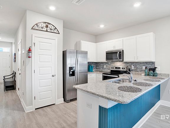 Introducing 26932 Spyglass Dr, a pristine corner unit townhouse boasting a generous 1,516 sq ft of living space. This 3-bedroom, 2.5-bathroom home is nestled in the heart of Orange Beach, surrounded by amenities such as shopping, dining, art centers, a recreation center, and the stunning white sandy beaches. Located in a community that is both walkable and golf cart friendly, residents can enjoy a range of facilities including a stunning community pool ideal for social gatherings, a serene pond complete with a water feature for relaxation, and a nature trail for those leisurely strolls.The townhome is equipped with modern conveniences including stainless steel kitchen appliances, elegant granite countertops, and comes partially furnished for ease of move-in. Thoughtful upgrades by the seller enhance the home's appeal, featuring a stylish kitchen backsplash, under-cabinet lighting, a charming beadboard accent beneath the kitchen peninsula, an expanded patio space for outdoor enjoyment, and a state-of-the-art security system with rear-facing cameras for peace of mind. An organized tool rack system in the garage adds to the convenience. Simply bring your belongings and immerse yourself in the vibrant lifestyle of the Orange Beach community.