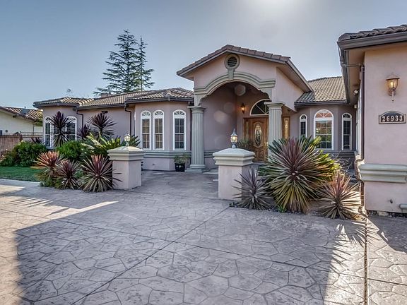 STUNNING, one level, 5 BD, 5 BA MEDITERRANEAN VILLA w/ BREATHTAKING VIEWS! Nestled on ONE ACRE in PEACEFUL GATED COMMUNITY. Exquisite Details throughout! Crown Molding, recessed ceilings & lighting. Hardwood, laminate, marble & slate flooring. Gourmet Kitchen. Living Room. Family room w/ Fireplace. Formal Dining Room. Office. Workout room. Game Room. Large Master Suite w/ Fireplace. Large spacious yard. Lots of extra storage space & room for RV parking.