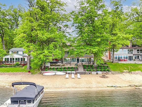 Welcome to your dream lake home in the private Sandy Lake community (Rootstown Schools). This beautifully updated home offers 3,000+ sq ft of finished space, 6 bedrooms, 3.5 baths, and 2 primary suites—ideal for multi-gen living or entertaining. Major updates include roof/siding (2012), hot water tanks (2023), and a HUGE 1,400+ sq ft 4+ heated garage (2020) with 12-ft ceilings, attic storage, and urinal bathroom- ASK YOUR realtor for the full list of everything done, way too much to list. Enjoy private lake access for pontooning, sailing, swimming, and fishing, plus the annual SPLASH event and neighborhood fireworks! Inside, nearly everything has been renovated: siding, windows, drywall, stairs, lighting, paint, bathrooms, and a fully remodeled kitchen with custom cabinets, granite, heated slate floors, concrete island, pantry, and appliances included. First floor features a luxurious primary suite addition with walk-in closet, heated floors, sitting area, and an extra bedroom. 2nd floor has 4 more bedrooms, another primary suite, 2 full baths, and large laundry/storage. The main living space includes an open-concept kitchen/living/dining area and a huge entertaining room with lake views, granite bar, and guest half bath that all walk out to your beach. Outside: multi-level concrete patios, hot tub area, fenced turf yard, private beach with firepit and dock, and professional landscaping. Just 10 mins to Kent, NEOMED, and freeway access—this private lake retreat has it all! If you want a year round or summer lake home, here it is! When you're here, you feel like you're instantly on vacation, yet you have all of the amenities, freeways, schools, and more nearby. Grab your move in ready, everything remodeled and WELL cared for lake house today.