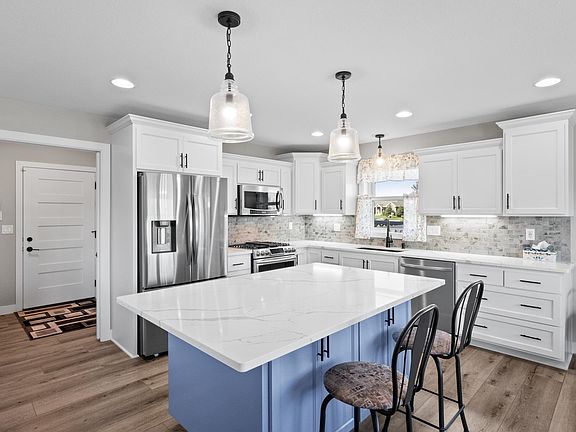 Discover this beautiful 2018 construction, 4-bedroom, 3-bath rambler in the desirable Wilderness Ridge neighborhood near Lake Victoria. Designed with quality craftsmanship and high-end finishes, this home features an open floor plan, a spacious owner’s suite, main-level laundry, and custom cabinetry throughout, including a beautifully designed kitchen with new quartz countertops. The finished lower level includes two additional bedrooms, a family room, ¾ bath, and generous storage space—all filled with natural light from garden-level windows. Every bedroom features a walk-in closet. Outside, enjoy a large lot with panoramic views, plus an insulated garage with floor drain, epoxy floor & electric car hook-up. The yard has been professionally landscaped with a paver patio, the lawn is irrigated, and the view of the wetlands & sounds of nature in the backyard are spectacular!