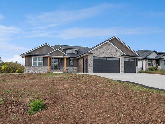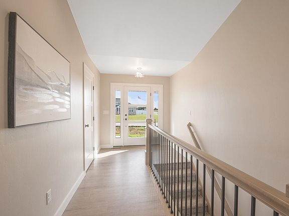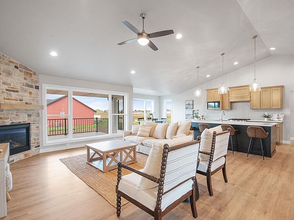 Welcome to the beautifully designed Oakdale Model! Step out onto the included 12x12 composite deck, perfect for morning coffee, evening sunsets, or effortless entertaining. Inside, the open-concept layout is filled with natural light, highlighted by large windows, a cozy gas fireplace, and a dining area that flows seamlessly into the living space. The kitchen features quartz countertops, a sleek tile backsplash, and a spacious 6x8 walk-in pantry. Thoughtfully designed with a split-bedroom layout, this home includes a locker system, laundry, and half bath off the oversized 3-stall garage. The primary suite offers a custom tile shower and walk-in closet, while the lower level is prepped for future bath and egress.