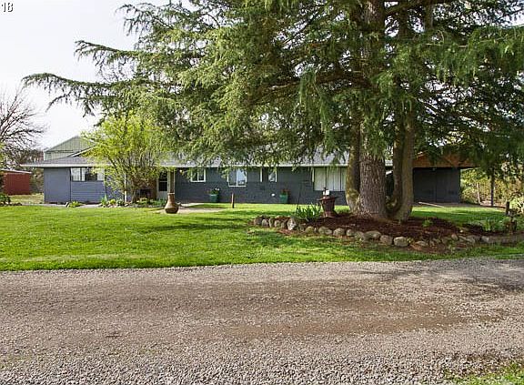 A Beautiful 3 bed 2 bath home, secluded down a long private gravel drive. Open & bright kitchen with Granite counters opens up to a large great room. French doors from both the master & great room open onto an amazing & massive covered back patio, perfect for indoor/outdoor living. There is ample of parking space on the 2-acre lot along with a large 30x46 shop, small pond with Bass, auxiliary building with kitchenette, A 3 stall barn.