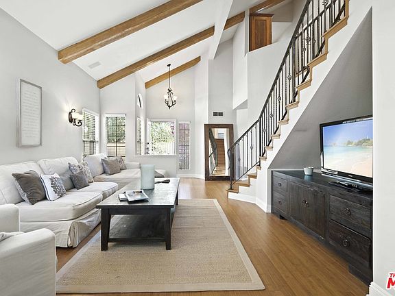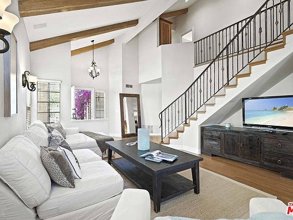 Accepting Back Up Offers. Beautifully upgraded and 3 BR executive home situated in a prime cul-de-sac location with light-filled living areas, soaring beamed ceilings, bamboo floors, custom iron staircase railing, and updated fixtures and bath areas. Gorgeous master bedroom with huge custom closet (formerly bedroom #4) with custom built-ins, soaking tub, separate shower with tumbled marble surfaces and separate espresso wood vanities. 2 additional guest bedrooms on the second level. Warm and welcoming stone fireplace in the family room, bright kitchen with stainless steel appliances. Wonderful neighborhood with easy access to hiking trails, neighborhood parks, and Erewhon. Great location just 9 miles to Malibu Beach, close to 101 Freeway, Agoura Tech Corridor, Warner Center and situated in the award-winning Las Virgenes School District.