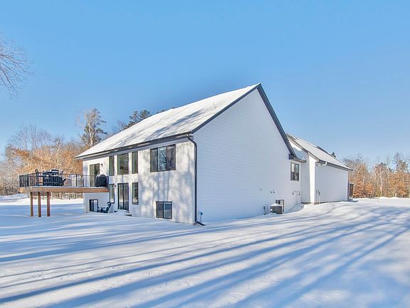 Newer construction home built in 2024, located in Pequot Lakes in the heart of the Brainerd Lakes area and set on a 1.25-acre lot. This thoughtfully designed home offers approximately 3,560 finished square feet with a functional layout and modern finishes throughout. The open-concept main level is ideal for everyday living and entertaining, featuring a living room with a gas fireplace, large windows providing excellent natural light, a kitchen finished with granite countertops and ample cabinetry, and a dedicated main-level dining room adjacent to the kitchen and living room. Two bedrooms are located on the main level, including a spacious primary suite with a full private bathroom, a large walk-in closet, and convenient direct access to the main-level laundry room. A half bathroom completes the main level. The fully finished lower level provides excellent additional living space with three more bedrooms, a full bathroom, a large family and recreation room offering flexible use for entertaining, guests, home office, or fitness space, and additional dedicated storage areas. Outdoor living is enhanced by a Trex composite deck off the main level as well as a large patio at the rear of the home overlooking the backyard, providing multiple areas to relax or entertain. Car enthusiasts and recreational buyers will appreciate the oversized heated four-car attached garage measuring approximately 40x24 with 13.5-foot ceilings, along with an additional 15x24 side parking pad located outside the garage offering convenient space for extra vehicles, trailers, or recreational equipment. The home features LP SmartSide and vinyl siding, propane forced-air heat, central air conditioning, private septic installed in 2024, private well, and CTC fiber optic internet. Located within the Pequot Lakes School District and just minutes from area amenities, this property also offers easy access to recreation with approximately three public boat launches located within two miles, making it simple to enjoy the Brainerd Lakes area lifestyle.