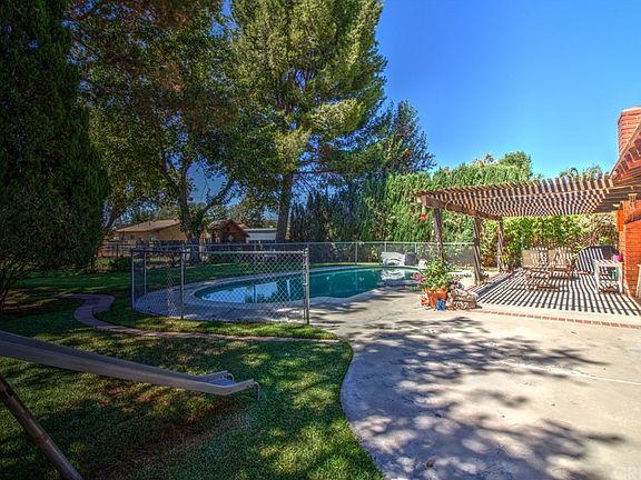 Looking for IN-TOWN Horse Property or a big half acre to build that dream shop/garage or studio or?? Look no further...This rare half acre property sits in the middle of Santa Clarita and is a true oasis! The lovely home is a one story 3 + 2 and features spacious bedrooms and living areas, pool (can be fully fenced) & spa area and RV parking. It is truly a pleasure to look out the large sliders off the living areas past the pool to the large half acre lot with green pasture and beautiful mature trees... Horse facilities include: 2 stall port-a-barn with covered breezeway. Each of the two 12x12 ft. enclosed stalls has an attached 24x24 ft. pipe corral. A third 24x24 corral has an aluminum shelter top. Automatic water and feed doors in the 2 stalls. Fenced and covered hay storage. Fully fenced, large grass pasture for grazing. There is a fenced dog run on the side and an assortment of fruit trees. An easement across the back of the property allows easy access to riding. The Santa Clarita River bottom and hillsides provide miles of riding. If you are looking for in-town horse property they are few and far between so look no further!