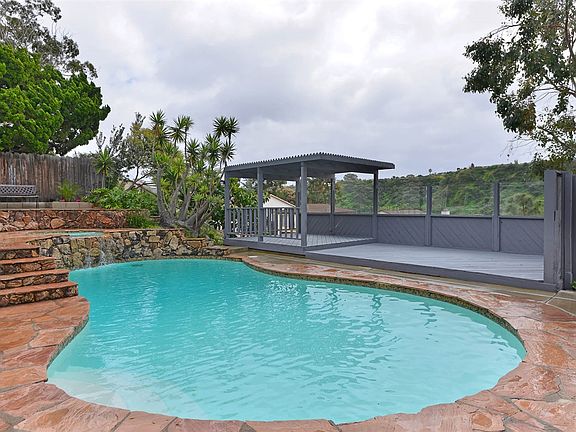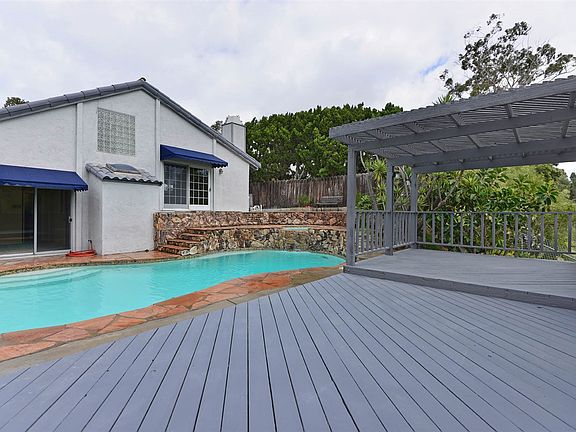 Secluded West University City tri-level features 3 bedrooms + office/den that could be restored to 4th bedroom, 8100 SF "street to street" lot for extra privacy, newly re-plastered pool and spa, and outlook to canyon, greenbelt and beyond. Whistle clean, new kitchen and bath plumbing fixtures, cantilevered entertainment deck, gleaming wood floors. Office/den (4th bedroom) includes super large closet and is suitable for office or hobbies.