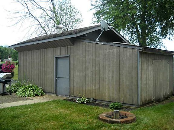 FANTASTIC ranch with many improvements. Tucked off the road down a winding driveway this 1 st home is impeccable inside and out! Open floor plan with "refreshed" kitchen dining room combo. Creamy cabinetry w/neutral counter tops. Working island w/ sink & additional seating plus work space. Stainless steel appliances to convey. Large eating area with stove fireplace and hearth to warm up the room. Many windows. Living room w/ bay window overlooking front yard. Ample sized bedrooms. Main bedroom w/ half bath. Updated full bath w/whirlpool tub. Outdoor enjoy private backyard w/ 20x20 patio area w/ built in swings. 12x29 pole barn for added storage. I car garage capabilities w/ opener. Many improvements include: kitchen & bath remodeled, vinyl replacement windows, vinyl siding & flooring. Updated lighting throughout. A MUST SEE!