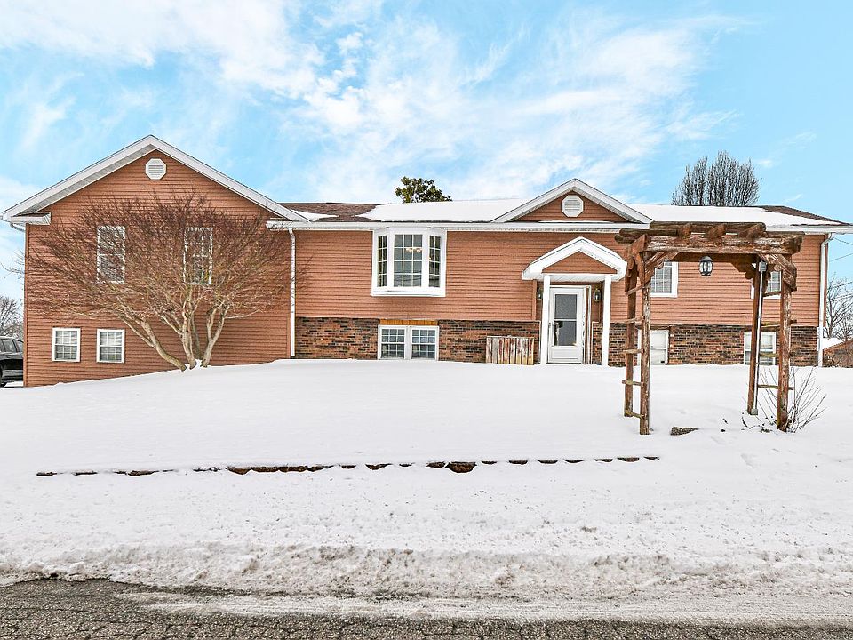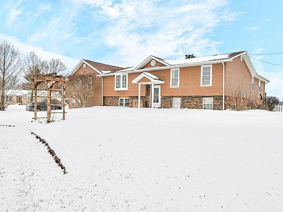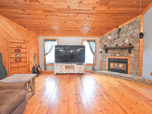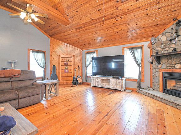 Roomy Transitional home on 1.26 acre lot. 4 bedroom, 3 bath. Over 5,000 total square feet. Indoor features include living room with cathedral ceiling and cozy fireplace. Perfect for spending time with family or watching the game. Kitchen includes convenient bar for quick meals. Also, plenty or formal dining room space. Primary suite offers ensuite bathroom, jacuzzi tub, and walk out deck. Finished rooms in lower level offers plenty of bedroom/office/flex space options. You'll also find a 2 car built in heated garage along with an additional detached garage and workshop. Other outdoor features include a second 600 square foot deck, playhouse with electric, and rural setting but convenient to all area amenities. Appliances stay and seller open to leaving personal property in the home. Motivated Veteran homeowner!