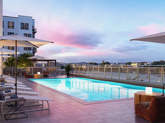 - Exterior features: *In Select Units, 2nd Floor Terrace Overlooking the River & Three Ri, 3rd Floor Curated Remote Workspace & Conference Ce, Barbecue, Bicycle storage, Built-In Shelving*, Concierge, Corner Unit, Currated Resident Events, Dedicated Yoga Space, Direct Access to Riverfront Park & Three River, Dog Wash, Expansive Windows, Game Room, Grand Lobby with Sightline to the Water, High Ceilings (Over 9 Ft), Jr. 1-BR, 1-BR & 2-BR Apartments, Kitchen Islands with Pendant Lighting*, Large Vanities, Linen Closets*, Onsite, Secure Parking with Available EV Charging, Pet Park, Podcast Room, Quartz Countertops, Stainless Steel Appliances & Hardware, TV Lounge, Two-Story Townhomes, Two-Tone Kitchen Cabinetry, Under-Cabinet Lighting, View Type: Premium River View, View Type: River View