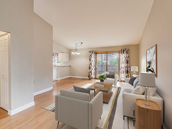 **FRESHLY PAINTED** Don't miss the opportunity to own this rarely available ranch with a full finished basement and a 2 car garage! The kitchen, dining area and living room with vaulted ceiling are all open to each other. The updated kitchen features beautiful white shaker style cabinets, stainless steel appliances, breakfast bar and plenty of storage space. Full finished basement provides for additional living space with a recreation room and a possible third bedroom. Enjoy the large fenced-in yard with a deck that is perfect for relaxing or spending time with family and friends. Updates include new gutters, soffits, and fascia (October 2024), whole house humidifier (2024), new dryer (2024), sliding door (2020), oversized kitchen window (2020), hot water heater (2020), furnace and A/C (2012). Great location that is walking distance to Butterfield Park that features a playground, basketball court, baseball field and a walking path. Easy access to all amenities including shopping and dining. Nothing to do but move in!