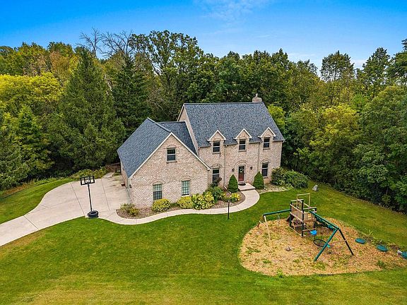 Are you looking for privacy and the peace/serenity of nature in your own backyard? Enjoy deer/wildlife as you overlook 3.34 wooded acres with a creek running through your backyard. Sit on your back deck overlooking the stunning backyard views. This beautiful custom 2-story brick home has 3 BR (with the potential for a 4th bedroom), 3.5 baths. An open concept layout on main level and vaulted ceilings. Modern amenities such as custom cherry cabinets, granite countertops and a floor to ceiling fireplace. Upper level has a large master suite w/ sitting area and 2 walk in closets. Enjoy your whirlpool tub in master bath with standup shower. The lower level has a theater room and wetbar with a 3 season room walkout to the backyard. New Roof (2023) and Septic with updated appliances. WDP schools