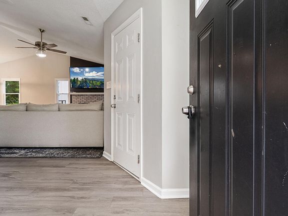 Nestled on a spacious .59-acre lot with wooded surroundings for extra privacy, this 3-bedroom, 2-bath home offers the perfect balance of comfort and convenience. Step inside to find vaulted ceilings that create an open, airy feel, along with a cozy fireplace ideal for relaxing evenings. The home is just minutes from the base, shopping, dining, and everything you need—making it a fantastic location for both work and play.