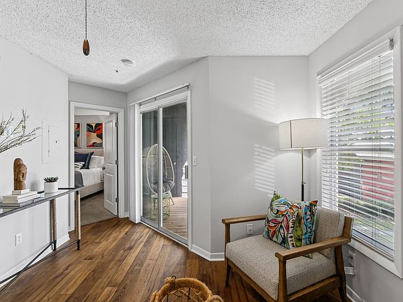 - Exterior features: Balcony, Bocce Court, Business Center, Car Care Center, Complimentary Coffee Service, Courtyard, ENERGY STAR Certified Building, Electric Vehicle Charging Stations, Fire Pit, Flexible Payment Plans, Managed Wi-Fi, Outside Storage, Package Receiving, Pet-Friendly, Picnic Area, Quartz Countertops, Spacious Closets, Stainless Steel Appliances, Stylish Backsplashes, Sun Rooms, Sundeck, Tennis Court(s), Two Dog Parks, Walking Distance to Emory Bus Route, Wood-Style Flooring, Yoga & Cycling Studio