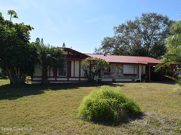 Great location of this 3 bedroom, 2 bath home in NE Palm Bay that sits on large corner lot. Newer vinyl flooring and paint throughout. Fully equipped kitchen with stainless steel appliances. Separate living and dining room areas with sliders to enclosed porch/sunroom. Nice size laundry room with washer and dryer and storage area. 1 car carport with plenty of driveway parking. Home is close to Turkey Creek and it's sanctuary, library, rec center, main roads and shopping.