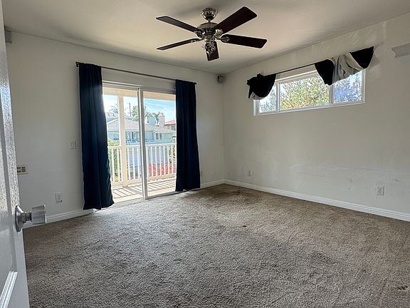 Private room with large sliding glass door to balcony, with what would be an ocean view if it wasn't for a couple trees! but on a clear day you can see a little sliver of the ocean. Another door that leads to what will be your own private bathroom. I originally had the master bedroom and decided to keep it as more of a living room/studio space for me and moved my bed into the room that also has access to your bathroom but you can just lock the door from the inside and have that entire bathroom to yourself since I have my bathroom in the master bedroom.
