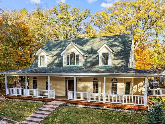 Come see this newly listed, beautiful Cape Cod style home that you will find interesting. This charming residence offers three comfortable bedrooms, with the primary bedroom conveniently located on the first floor for easy access. A full 9' basement has 2 access points from the house and outside. There's a full bathroom completely roughed-in ready to be finished. Additional features of this home is an elegant wrap-around porch, perfect for relaxing, and a practical eat-in kitchen. The property is situated on a spacious two-acre lot and includes several desirable amenities and a 28' above ground pool. There is a 2-1/2 car garage, connected to the main house by a breezeway, with a second floor bonus room, offering great opportunities as a man cave or office and storage. So much to see at this remarkable property.