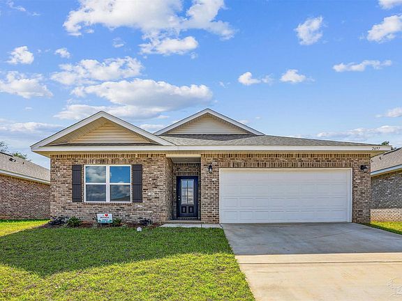 NEW CONSTRUCTION in the prestigious Bentley Oaks Neighborhood. Just completed! Privacy Fence, FOUR SIDES BRICK AND PRIVATE BACK YARD. This home is a showstopper! 1706 sq ft in Bentley Oaks. Conveniently located minutes from I-10, easy commute to bases, downtown and to the beach. This new series of homes have beautiful exteriors that will catch the eye. The brand new Dogwood floor plan has 3 bedrooms, and 2 baths. The design has an open kitchen with large prep island and the popular Shaker Style cabinets. These gorgeous cabinets are white with evergreen fog island, real birch wood, full overlay,dovetail tongue and groove with soft close doors and drawers. This home stands out with white quartz, carrera frost, 3 cm counter tops in kitchen and bath and Stainless appliances are featured in kitchen, as well as brushed nickle bar pulls on cabinets. A built-in microwave is also included. The breakfast room has easy access to very nice covered lanai, perfect for entertaining, a wonderful pantry and LED lighting makes meal prep a dream. The master suite has trey ceilings and ceiling fan. Deluxe master bathroom has a spacious shower, luxury quartz counters, framed mirrors over sinks, LED ceiling lights, and large walk in closet. Shaw, floating, beveled LVP, color driftwood in all areas except carpet is in bedrooms and bedroom closets. Double garage, 30 year architectural shingles, energy efficient double pane vinyl windows, storm shutter window protection, and covered by StrucSure, a 10year limited warranty. Call today to view this gorgeous home. Photos are of actual home and lot.