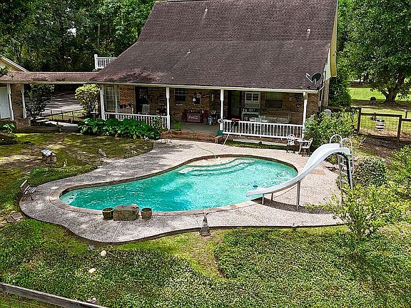 Located in Beaumont colony! Beautiful corner 4 acre lot. 3 bed 2 bath, swimming pool, big front and back porch, balcony, garage and more! Please call with any questions!