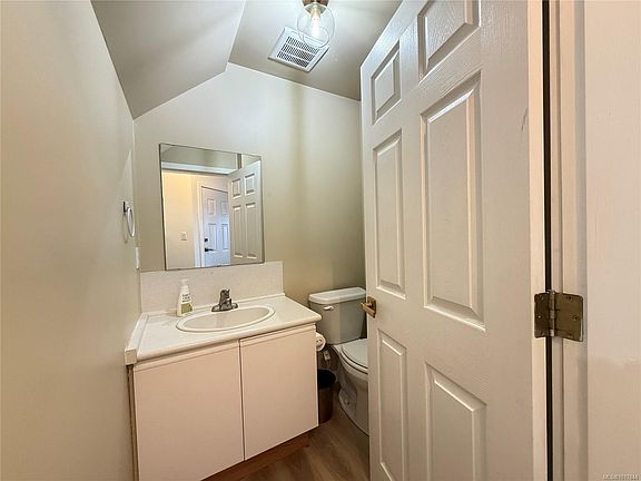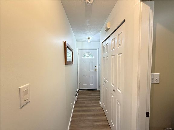 This bright corner-unit townhouse offers 3 bedrooms, 1.5 baths, and an open floor plan that makes the most of its natural light and mountain views. Enjoy a peak of the ocean from 2 of the bedrooms upstairs. Recent updates include new flooring throughout the main level, upstairs bathroom, and laundry area, along with a fresh paint job that gives the home a modern, move-in-ready feel. The kitchen has updated granite countertops as well as tiled backsplash and updated appliances. The fenced-in patio provides a private outdoor space for relaxing or entertaining, while the attached garage and extra storage room with built-in shelving add everyday convenience. With a low strata fee and excellent value, this home is ideal for first-time buyers or those looking to downsize. A rare opportunity to enjoy comfort and practicality all in one thoughtfully maintained property.