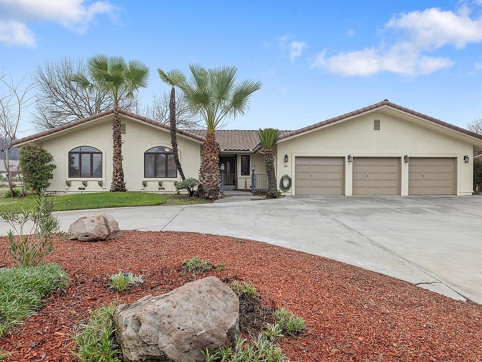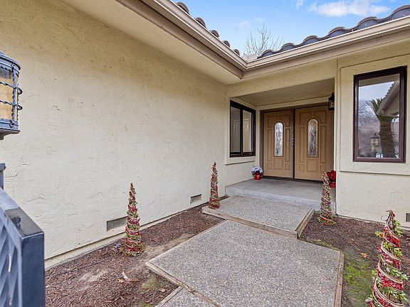 Welcome to a golden opportunity in the charming Solar Estates Community! This beautifully updated home offers 4 to 5 bedrooms and 3.5 bathrooms, set on a spacious corner lot featuring a three-car garage, RV parking, and a sparkling pool. The circular driveway and RV/trailer access parking ensure easy entry and exit. Enter through the gated courtyard into a welcoming home with fresh interior paint, new flooring, baseboards, electrical outlets and switches, and a barn door for the master bath closet, enhancing the charm of this stunning residence. Upon entering the large foyer, you'll find a spacious living room with a cozy open fireplace and a large built-in entertainment center. Adjacent is a potential fifth bedroom or office and a half bath. The chef's dream kitchen connects the dining room and living room, featuring granite countertops, newly painted cabinets with new hardware, a large center island for meal prep, and plenty of counter space. There's even room for two refrigerators! The dining room, complete with large windows for natural light, patio access, and a beautiful built-in china cabinet, adds to the charm. The primary suite offers a large cedar-lined walk-in closet with a barn door closet door and a split master bathroom. Three additional spacious bedrooms, a large guest bathroom, and an adjacent laundry room with storage complete the interior. The backyard oasis boasts a large covered patio area, a sparkling pool with a removable safety fence for those hot summer days, a full exterior bathroom, and mature trees and landscaping, making it a peaceful retreat for family and friends to gather. This home truly has it all! This one wull go quick so be sure to contact your local agent for your private appt!!