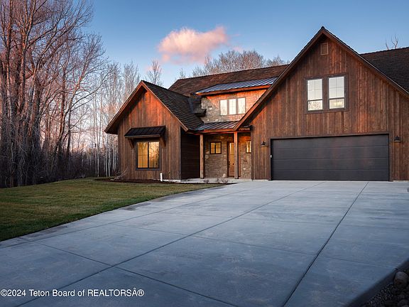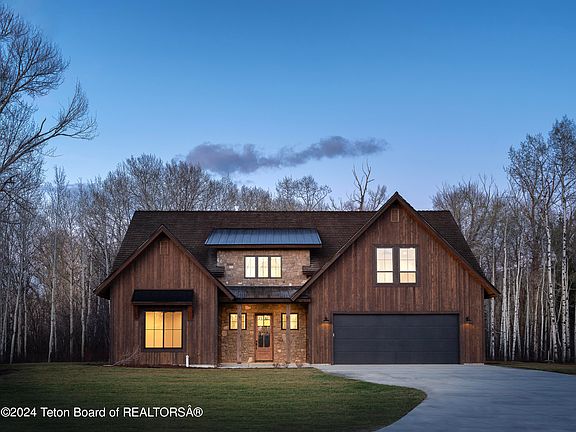 Near downtown Driggs yet secluded amongst groves of Aspen and Cottonwood trees, this modern new home offers a unique balance of privacy and convenience. The coveted Redtail community boasts paved roads throughout, and this prime location in the community includes acreage adjacent to community open space providing a continuation of natural landscape all the way to Teton Creek. Offering 6 bedrooms and 6.5 baths, every bedroom in this mountain home includes an ensuite bath. The open main floor living area includes massive chef's kitchen, hidden butler pantry, main floor primary suite and oversized garage. Sliders lead to covered patios and the second level guest suite/rec room includes a second covered deck area with massive slider overlooking the natural habitat surrounding this community.