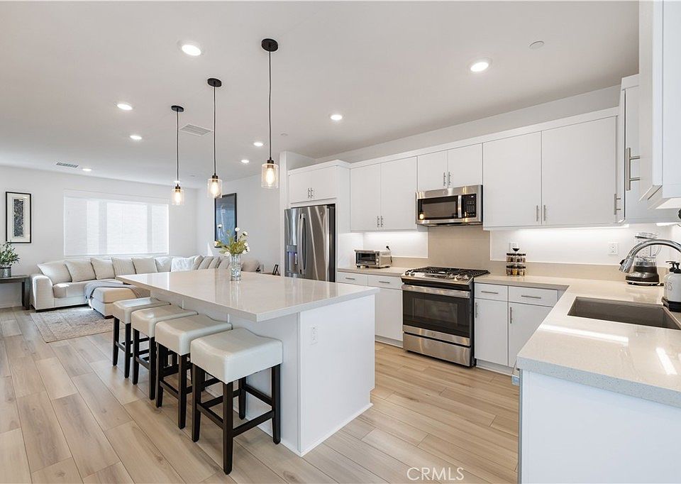 Popular Calla Plan 2 townhome located in the beautifully designed FivePoint Valencia community. This stylish 3 bedroom, 4 bath residence combines modern design with thoughtful functionality across three spacious levels.